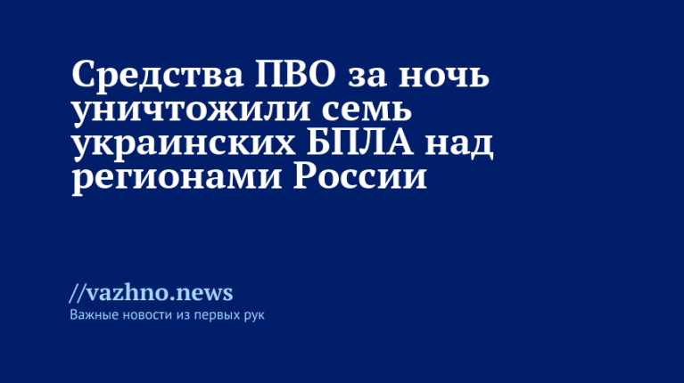 «В течение прошедшей ночи дежурными средствами ПВО уничтожены семь украинских беспилотных летательных аппаратов», — написали в Telegram-канале ведомства.