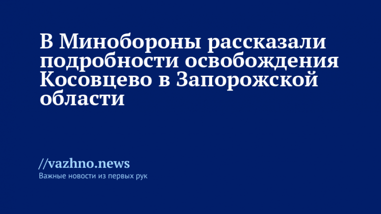 О освобождении Косовцево в Запорожской области ранее сообщали 26 декабря. Кроме того, российским военнослужащим удалось нанести поражение живой силе и технике шести механизированных штурмовых бригад и четырех штурмовых полков Вооруженных сил Украины (ВСУ).