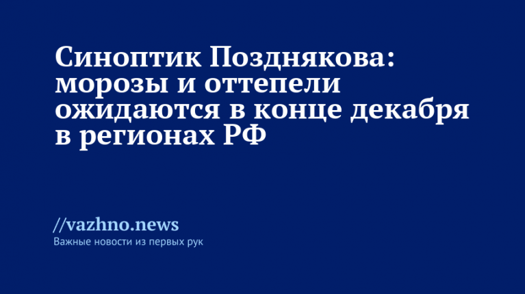 Синоптик Позднякова: в конце декабря в регионах РФ морозы и оттепели