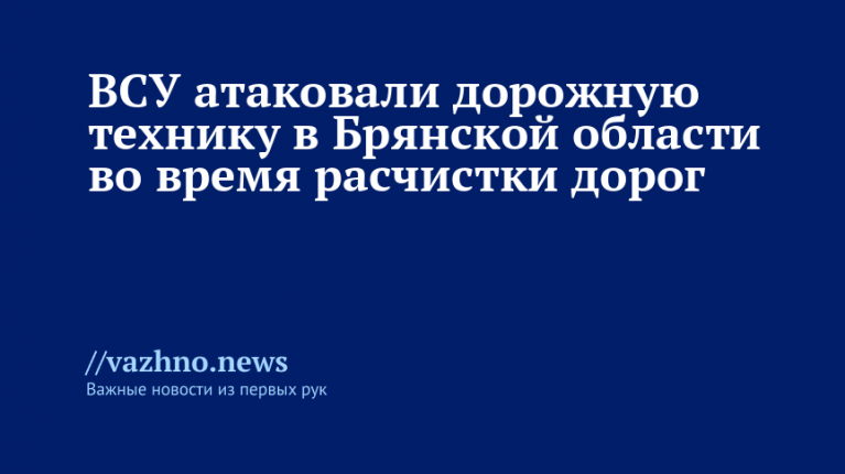ВСУ обстреляли дорожную технику в Брянской области во время расчистки