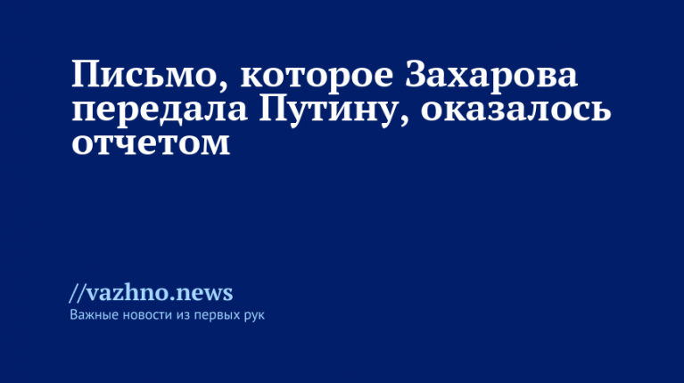 28 декабря официальный представитель МИД России Мария Захарова сообщила, какое конкретно послание она поместила в конверт и передала президенту Владимиру Путину.