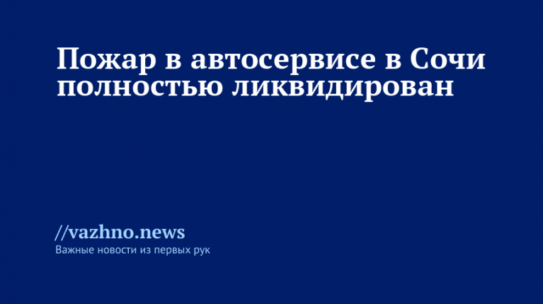 «Пожар в Сочи в автосервисе полностью ликвидирован», — приводит сообщение ведомства «РИА Новости».