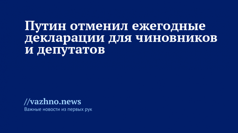 Президент России Вladimir Putin подписал закон, который отменяет обязательное ежегодное декларирование доходов для чиновников. При этом вводится постоянный контроль за денежными средствами и имуществом госслужащих и их родственников. Соответствующий документ был опубликован 28 декабря на интернет-портале правовой информации.