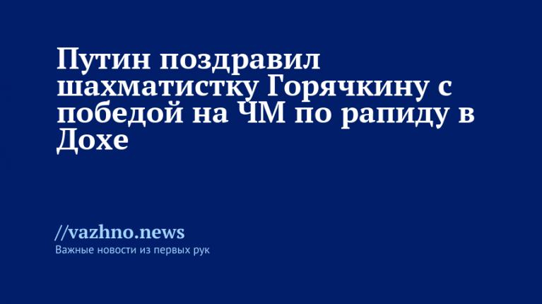 «Уважаемая Александра Юрьевна! Поздравляю Вас с триумфальным выступлением на чемпионате мира по быстрым шахматам в Дохе», — приводятся слова Путина на сайте Кремля.