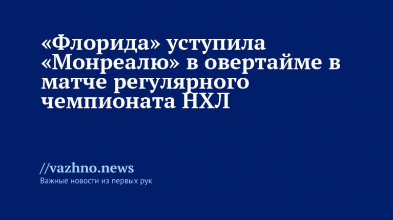 Хоккейный клуб (ХК) «Флорида Пантерз» уступил команде «Монреаль Канадиенс» в матче регулярного чемпионата Национальной хоккейной лиги (НХЛ). Встреча прошла 30 декабря и завершилась со счетом 2:3 в овертайме.