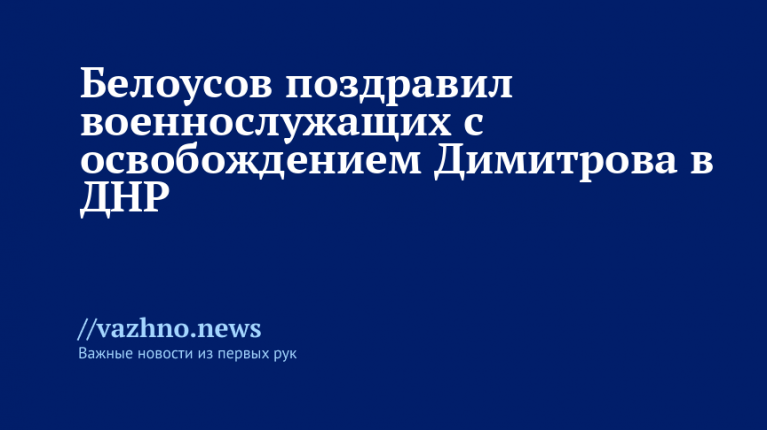 Министр обороны России Андрей Белоусов направил поздравления российским военнослужащим в связи с освобождением населенного пункта Димитров в Донецкой Народной Республике (ДНР). Об этом 31 декабря сообщила пресс-служба Минобороны РФ.