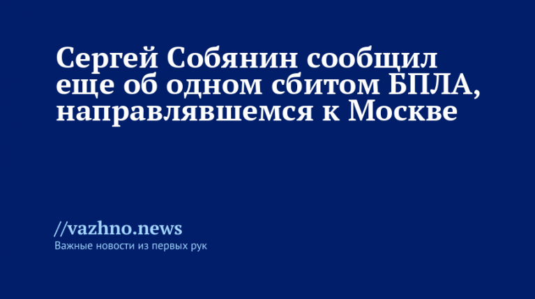 «Сбит один беспилотник, летевший на Москву. На месте падения обломков работают специалисты экстренных служб», — говорится в его сообщении в MAX.