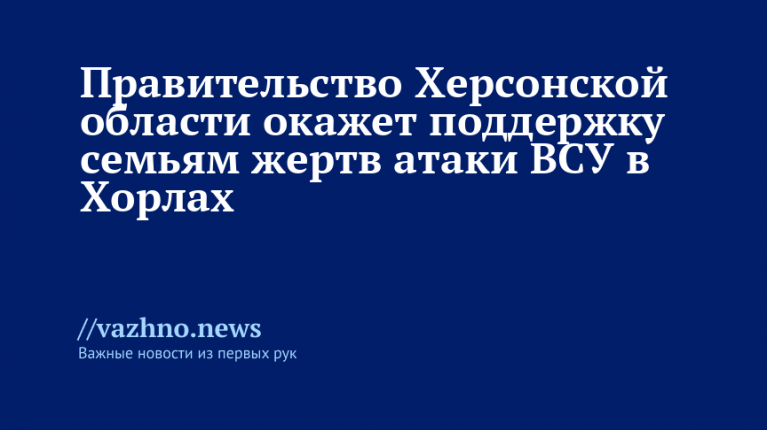 Губернатор Херсонской области Владимир Сальдо 1 января подписал указ, которым местному правительству поручено подготовить и воплотить в жизнь комплекс мер поддержки для родственников погибших и пострадавших в результате атаки беспилотных летательных аппаратов (БПЛА) Вооруженных сил Украины на кафе и гостиницу в населенном пункте Хорлы. Документ определяет круг необходимых действий по оказанию помощи пострадавшим и семьям погибших.