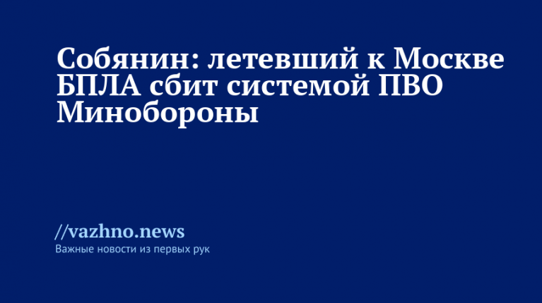 Собянин: БПЛА, летевший к Москве, сбит ПВО Минобороны