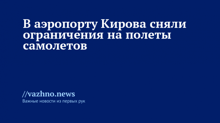 «Аэропорт Киров (Победилово). Сняты ограничения на прием и выпуск воздушных судов», — написал он в Telegram-канале.