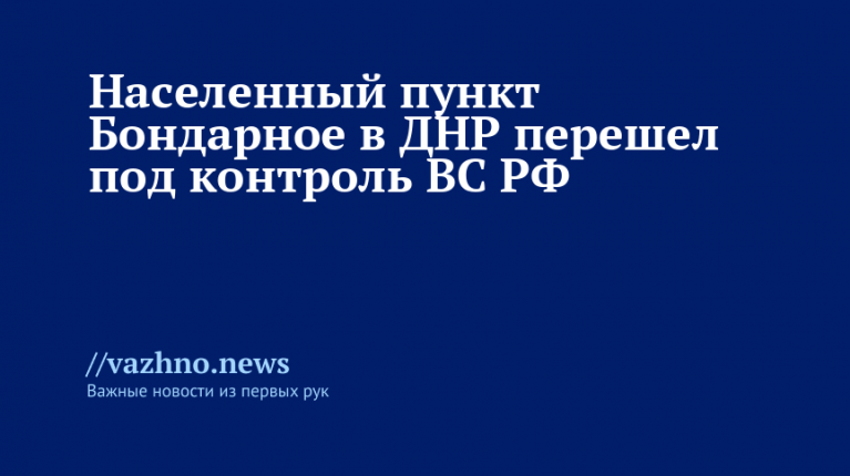 Населенный пункт Бондарное в Донецкой Народной Республике (ДНР) перешел под контроль российских сил. Сообщение об этом поступило в Минобороны России 3 января.