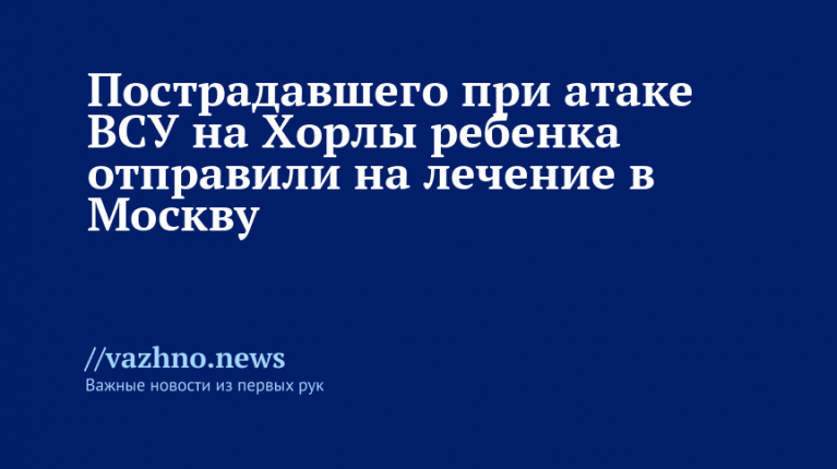 Ребенок, получивший ранения в результате удара Вооруженных сил Украины (ВСУ) по селу Хорлы в Херсонской области, находится в тяжелом состоянии и перевозится для лечения в медучреждение в Москве. Об этом 4 января сообщил Telegram-канал минздрава республики Крым.