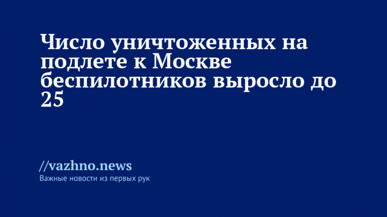 В тот же день Собянин сообщал о том, что ПВО уничтожили еще шесть беспилотников, направлявшихся в сторону Москвы. До этого силы ПВО уничтожили два дрона, летевших в сторону столицы. Ранее на подлете к Москве был сбит еще один беспилотник. Позже были ликвидированы дополнительно семь БПЛА. Еще один дрон силы ПВО сбили позднее, и тогда суммарное число уничтоженных беспилотников достигло 24.