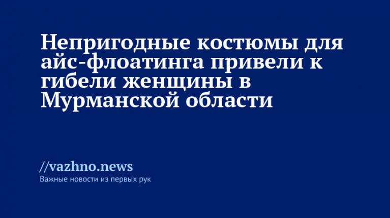 В Мурманской области во время группового айс-флоатинга (купание в холодной воде) из-за неисправных гидрокостюмов погибла женщина. Об этом 5 января информирует Следственный комитет (СК) РФ.