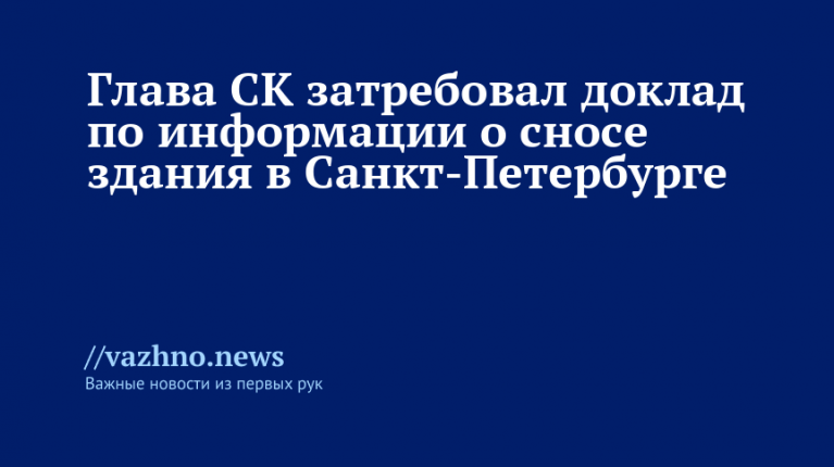Глава СК затребовал доклад о сносе здания в Санкт-Петербурге