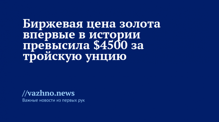 Биржевая стоимость золота 9 января впервые в истории превысила отметку $4500 за тройскую унцию. Об этом говорят данные биржи Comex.
