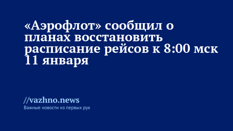 Авиакомпания «Аэрофлот» намерена вернуть обычное расписание полетов к 8:00 мск 11 января. Об этом 10 января было сообщено в Telegram-канале перевозчика.