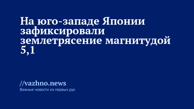 На юго-западе Японии зарегистрировано землетрясение магнитудой 5,1, угроза цунами не объявлялась. Об этом в воскресенье, 11 января, сообщили на сайте метеорологического управления страны.
