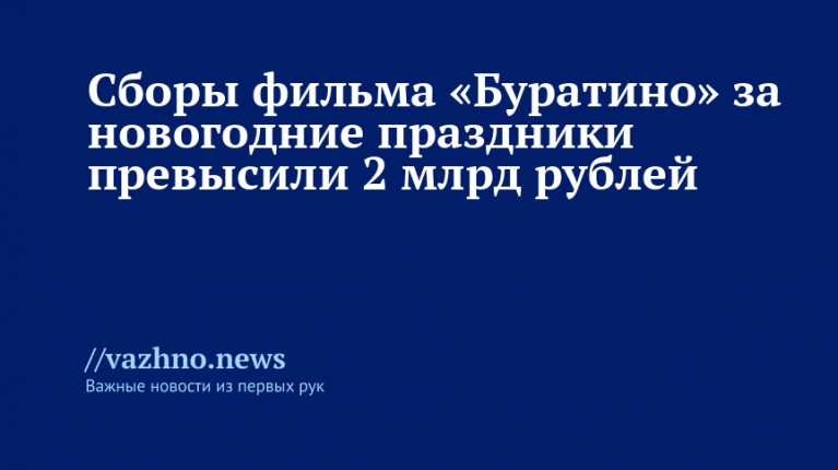 Картина «Буратино» перешагнула рубеж в 2 млрд рублей по суммарным кассовым сборам в российском прокате. Об этом говорят данные на сайте Единой автоматизированной информационной системы Фонда кино по состоянию на 11 января.