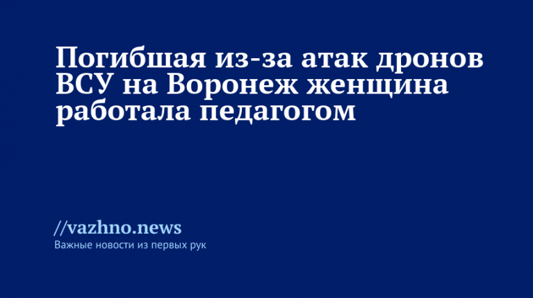 Погибшая в результате атаки беспилотников Вооруженных сил Украины на Воронежскую область была учителем русского языка и литературы. Об этом администрация Воронежа сообщила 12 января.