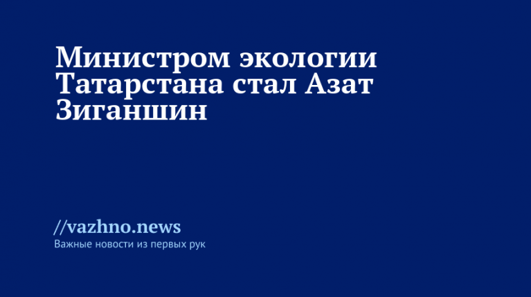 Азат Зиганшин назначен министром экологии Татарстана — он ранее был депутатом Государственного совета РТ и возглавлял компанию «Татагролизинг». Соответствующий указ опубликован 12 января.