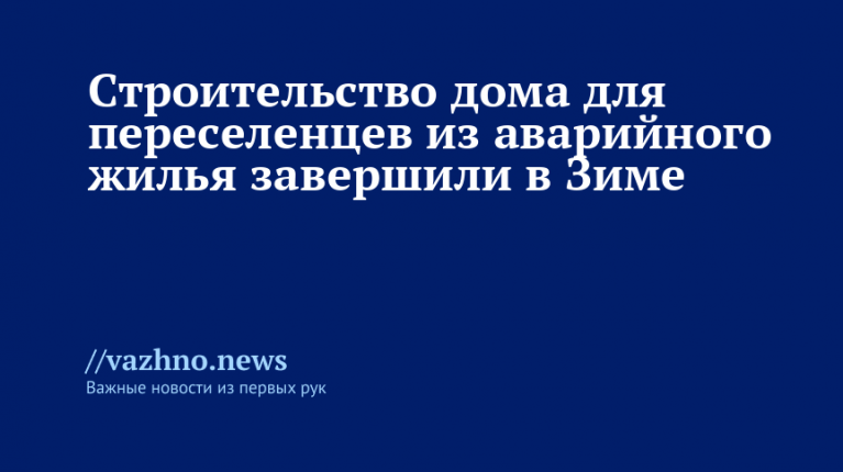 Региональная прокуратура сообщает, что в городе Зима Иркутской области завершено возведение многоквартирного дома, предназначенного для переселенцев из аварийного жилфонда.