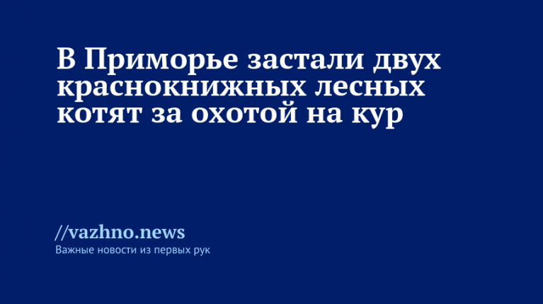 В Приморском крае заметили двух представителей краснокнижного вида — дальневосточных лесных котят — когда они охотились на кур в одном из хозяйств подсобного типа, животных отловили и привезли на обследование. Об этом 13 января сообщил центр реабилитации «Тигр». В результате спасателей заинтересовал факт проникновения хищников в населённый пункт, после чего котят поместили в центр для проверки состояния здоровья.
