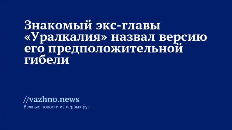 Знакомый экс‑главы «Уралкалия» озвучил версию его гибели