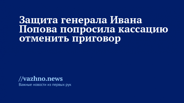 Представитель защиты бывшего командующего 58-й армией Ивана Попова, отбывающего в колонии Подмосковья пятилетний срок по делу о мошенничестве и служебном подлоге, подал кассационную жалобу на вынесенный приговор. Об этом 16 января сообщил адвокат осужденного Сергей Буйновский.