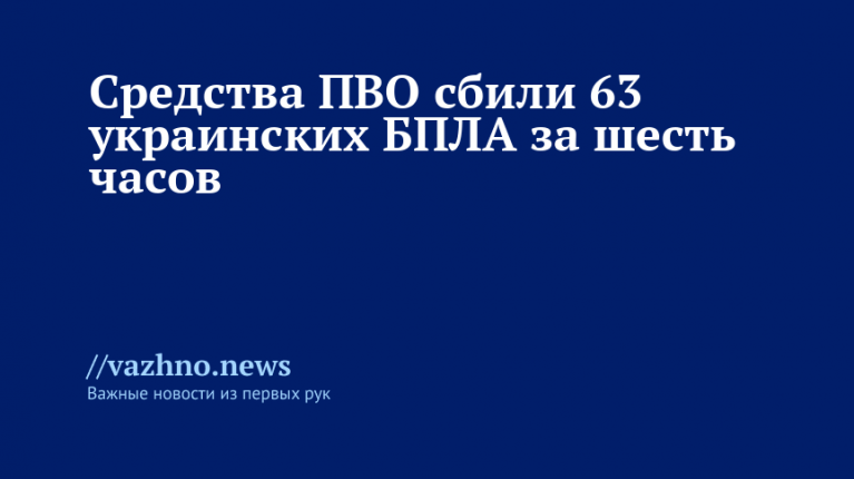 ПВО за шесть часов сбили 63 украинских беспилотника