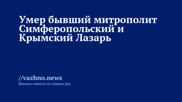 Бывший митрополит Симферопольский и Крымский Лазарь (в миру — Николай Швец) умер на 87-м году жизни. Сообщение об этом 17 января опубликовала Крымская митрополия в своем Telegram-канале.
