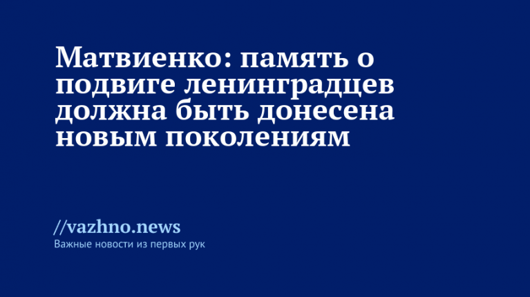Недопустимо, чтобы в забвение ушло и священное мужество жителей блокадного Ленинграда, и чудовищные преступления нацистов в годы Великой Отечественной войны. Эта память — наш долг перед прошлым и залог будущего, которую необходимо передать детям и внукам. С таким заявлением 18 января выступила председатель Совфеда Валентина Матвиенко.