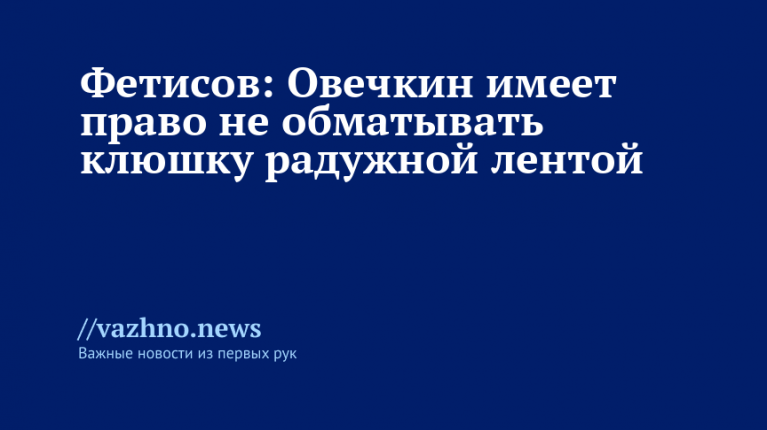 Российский нападающий и капитан хоккейного клуба Национальной хоккейной лиги «Вашингтон Кэпиталз» Александр Овечкин имеет право занимать собственную позицию, в том числе если она не совпадает с акцией в поддержку ЛГБТ (международное движение признано экстремистским в РФ и запрещено). Об этом 18 января сообщил двукратный олимпийский чемпион, депутат Государственной Думы Вячеслав Фетисов.