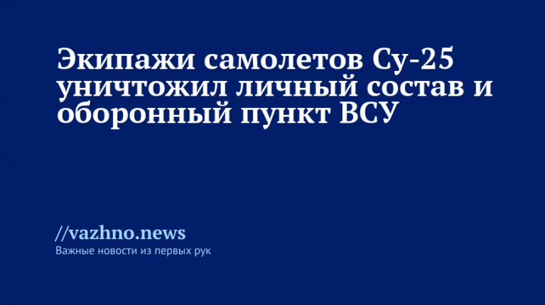 На самолетах Су-25 экипажи штурмовой авиации уничтожили личный состав и опорный пункт Вооруженных сил Украины (ВСУ) в зоне ответственности группировки войск «Южная». Минобороны РФ публикует соответствующие кадры 19 января.