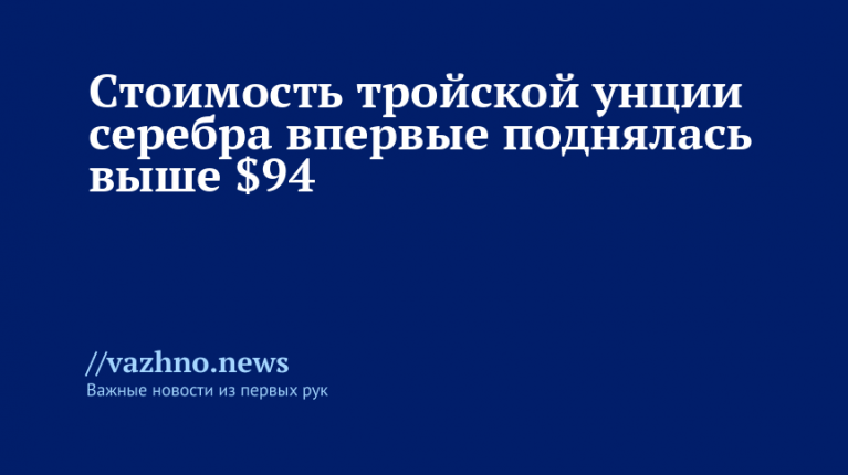 Цена тройской унции серебра впервые превысила $94