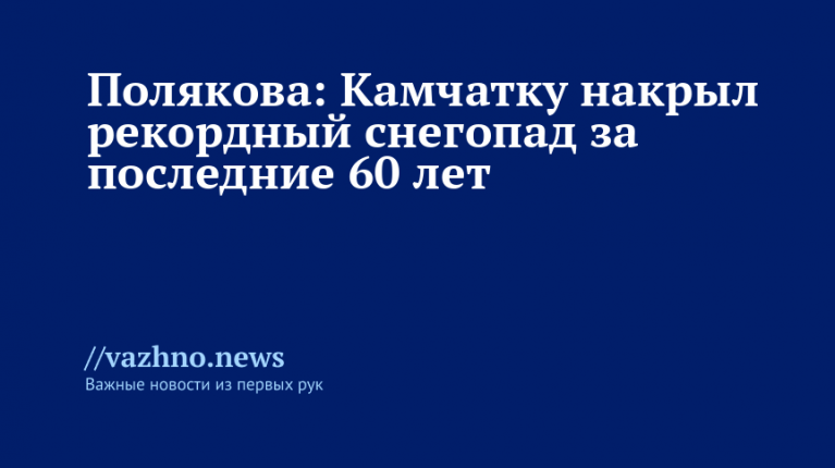 Полякова: на Камчатку обрушился рекордный снегопад за 60 лет