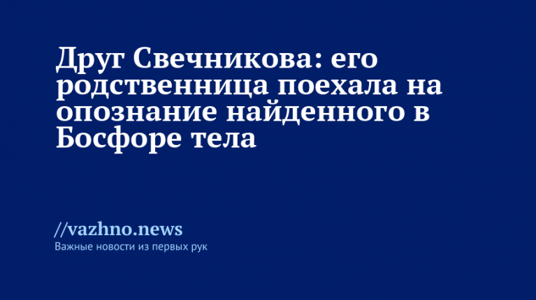 Родственница российского профессионального пловца Николая Свечникова, пропавшего во время заплыва через Босфор в Стамбуле, отправилась на опознание мужчины, найденного в проливе. Об этом 20 января сообщил «Известиям» друг спортсмена.