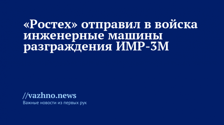 Концерн «Уралвагонзавод», входящий в состав госкорпорации «Ростех», передал Минобороны России очередную партию инженерных машин разграждения ИМР-3М. Об этом 21 января сообщили в пресс-службе компании на сайте.