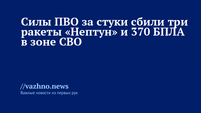 ПВО за сутки сбили 3 ракеты «Нептун» и 370 БПЛА в зоне СВО