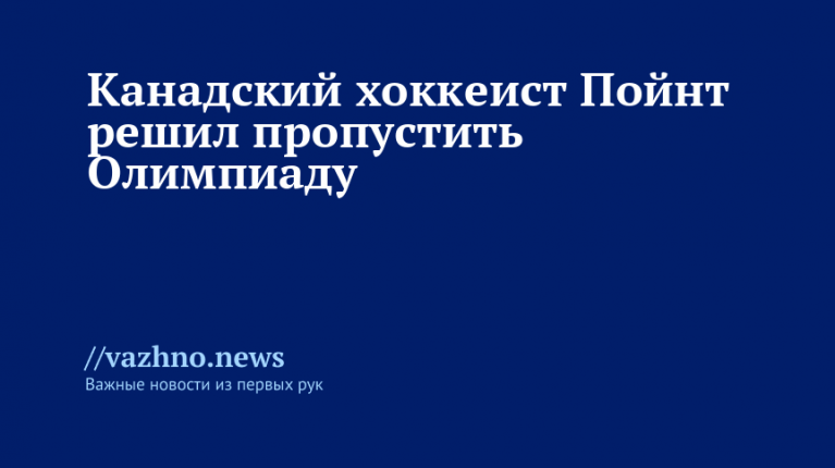 Форвард национальной команды Канады и клуба НХЛ «Тампа-Бэй Лайтнинг» Брэйден Пойнт не примет участия в зимних Олимпийских играх 2026 года, которые пройдут в Италии. Информация об этом появилась 5 февраля на официальной странице сборной в социальной сети X.