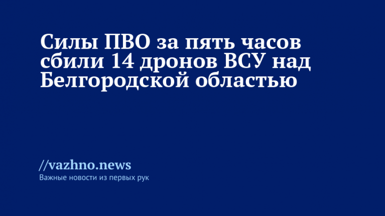 За пять часов российские силы противовоздушной обороны ликвидировали четырнадцать украинских беспилотников в небе над Белгородской областью. Соответствующее заявление было опубликовано Министерством обороны РФ 6 февраля.
