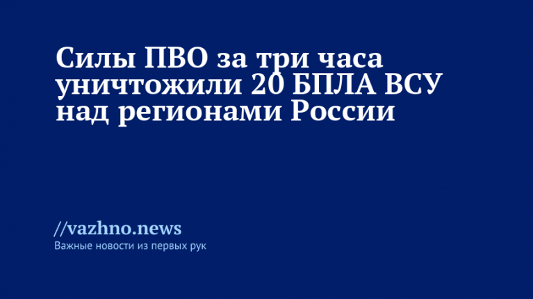 «В течение указанного дня, с восьми вечера до одиннадцати ночи по московскому времени, на дежурстве находились средства ПВО, которым удалось нейтрализовать двадцать украинских БПЛА самолетного типа», — приводится сообщение в официальном Telegram-канале военного ведомства.