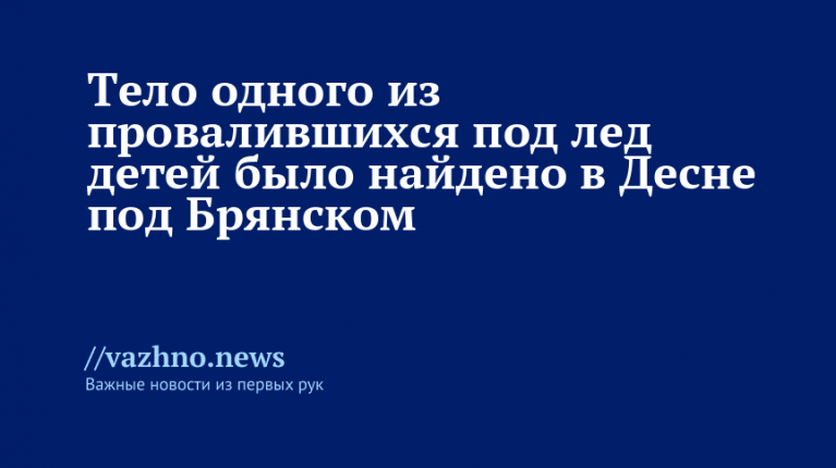 «Следственные органы Следственного комитета по Брянской области информируют о нахождении в водах реки Десны тела одного из несовершеннолетних, которые оказались подо льдом 20 января 2026 года», — указано в сообщении Telegram-канала ведомства.