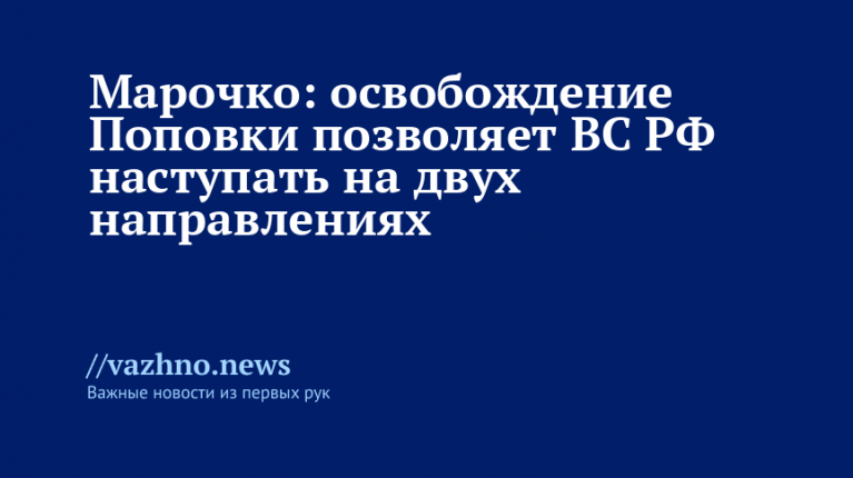 Взятие под контроль населенного пункта Поповка открывает для российских военных возможность вести наступление по двум операционным направлениям. Такое заявление 8 февраля сделал военный аналитик Андрей Марочко.