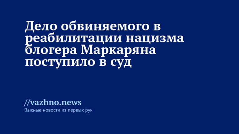 Московский городской суд приступит к рассмотрению уголовного дела по существу в отношении блогера Арсена Маркаряна, обвиняемого в реабилитации нацизма и оскорблении памяти защитников Отечества. Как сообщили в судебном органе 9 февраля, информацию об этом передали изданию «Известия».