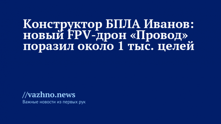 Новый мощный ударный FPV-дрон «Провод» позволил ликвидировать примерно тысячу объектов Вооруженных сил Украины (ВСУ) с начала 2026 года. Такие данные во вторник, 10 февраля, привел главный конструктор беспилотников линейки «Овод» Андрей Иванов.