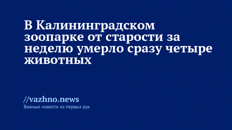 Четыре обитателя Калининградского зоопарка, чей возраст значительно превысил средние видовые показатели, умерли в течение одной недели. Информация об этом была распространена пресс-службой зоопарка 11 февраля.