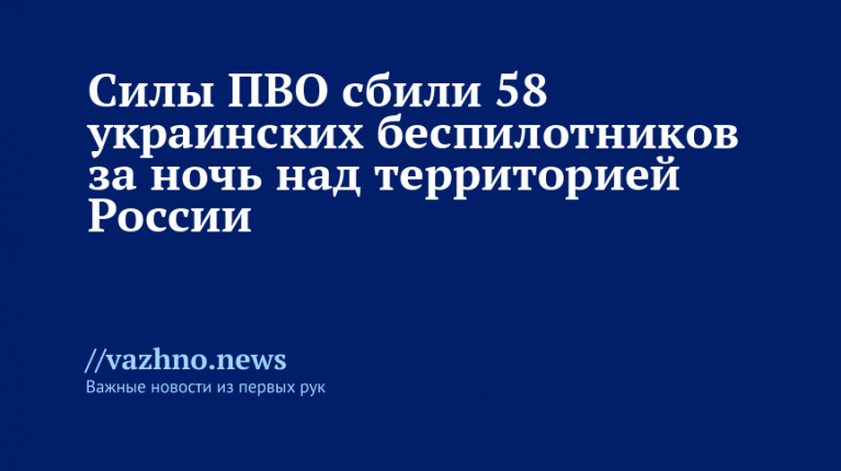 В течение ночи российскими силами противовоздушной обороны было уничтожено 58 украинских беспилотников самолетного типа. Соответствующую информацию 13 февраля распространило Министерство обороны Российской Федерации.