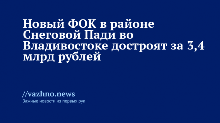 Новый ФОК во Владивостоке построят за 3,4 млрд рублей