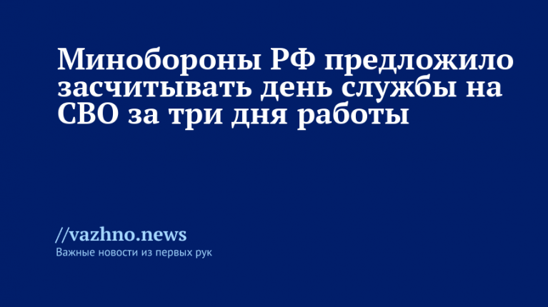 Российское оборонное ведомство выступило с инициативой, согласно которой один день нахождения в зоне специальной военной операции (СВО) будет приравниваться к трем дням трудового или государственного стажа. Данный проект правового акта размещен на официальном портале для публичного обсуждения нормативных документов.